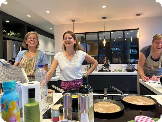 Nos ateliers, c'est 3h pour souffler, échanger, rire. Maximum 6 personnes, pour qu'on prenne vraiment le temps ensemble. On met les mains à la pâte, on goûte, on termine autour de la table. Comme à la maison, mais sans la vaisselle après 😉